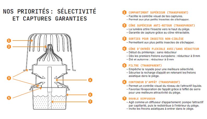 Protégez votre environnement avec notre piège spécialement conçu pour cibler uniquement le frelon asiatique, sans mettre en danger les abeilles ni les autres insectes utiles.